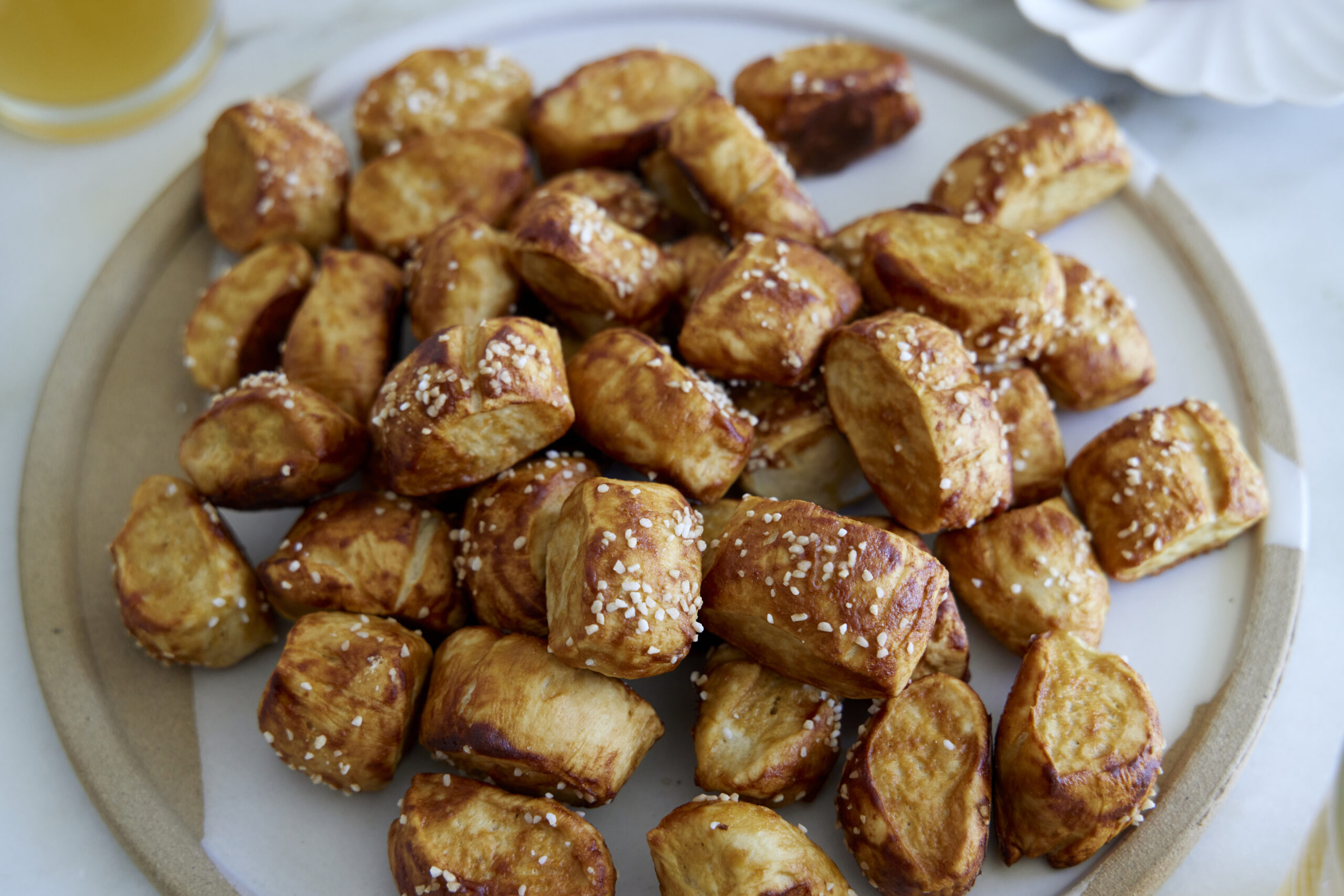 The soft chewy pretzel bites are especially easy to make. Here are the simple steps: Mix all the kit ingredients with oil and water in a large bowl, then knead the dough by hand for three minutes. Afterward, let it rise for 15 minutes, then divide the dough into balls and toss them into the glaze mixture. Finally, sprinkle each dough ball with salt and bake for 15 to 20 minutes. (Here’s the full recipe, if you’d like to see.)