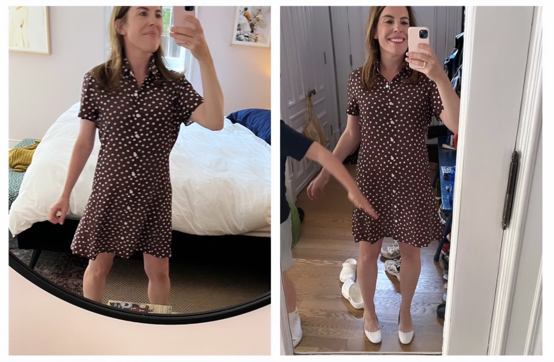 For a recent drinks date, I wore a polka dot number with Chloé flats that I’d found on eBay. (Dancing arm courtesy of Anton.)