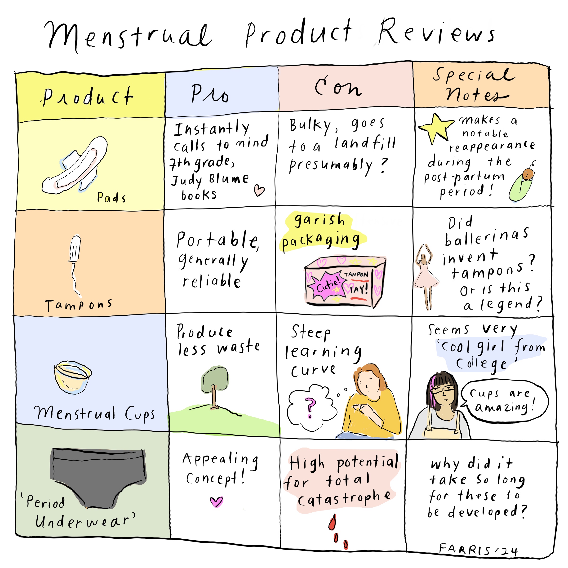 I need to add my one cents. I am a pad gal with really heavy periods. Let me tell you that pad technology has really come a long way since our middle school days. Flex foam is where it’s at.