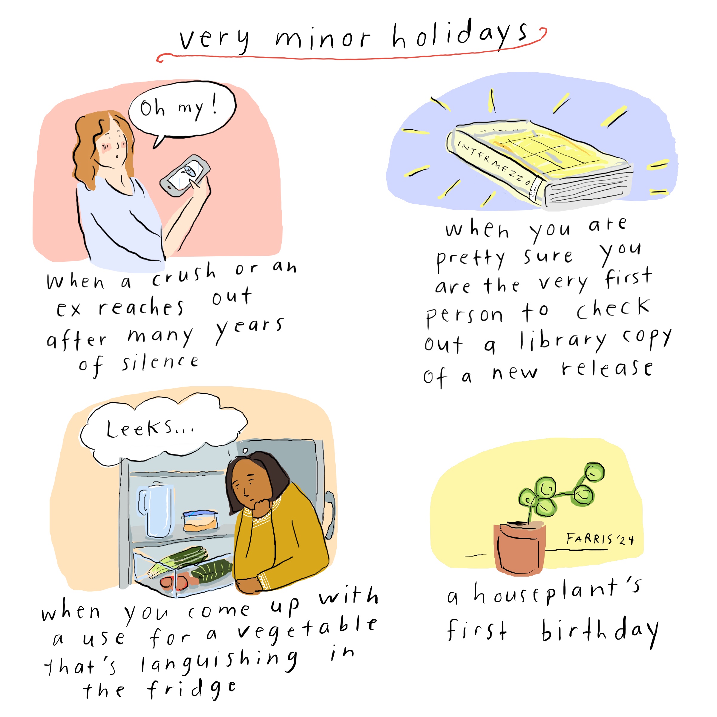 OH I don’t consider the first one a holiday xD more like unannounced anxiety-inducing trauma haha but all the others are absolutely minor holidays of joy and excitement!
