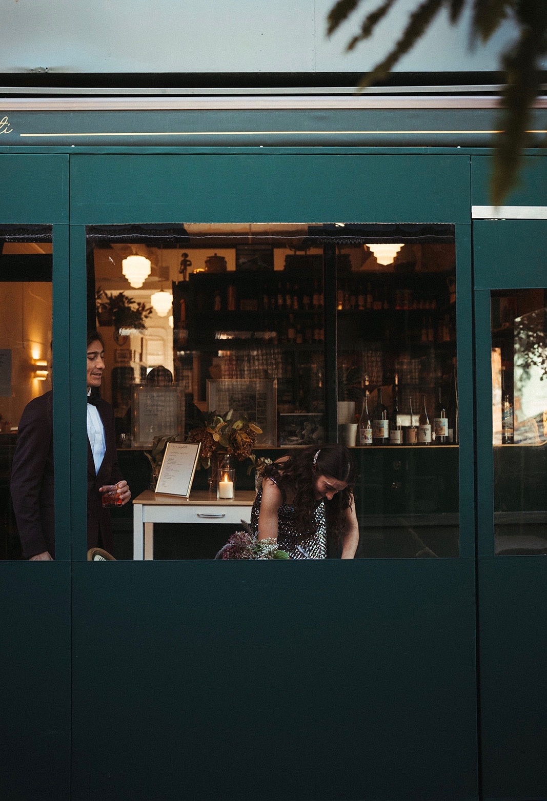 “It was so nice to have the wedding in our Brooklyn neighborhood — in the backyard of Cafe Spaghetti. Before heading down to see everyone, the staff made an Aperol Spritz for me and an Old Fashioned for Karl. We had a sip together before walking in. We were nervous!”