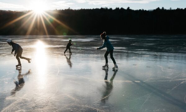 We are at the public outdoor skating rink, and it is cold, but I am hot...